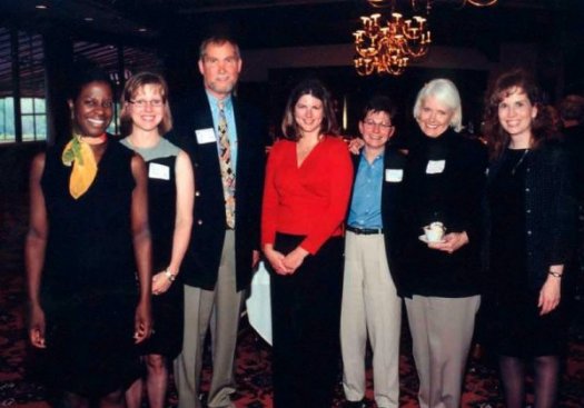 Tennyson Center for Children staff members show their appreciation to donors, from left, Communications Manager Kelly Wagoner, Special Events Coordinator Michele Gregory, Tennyson Center for Children Board Chair Jim Bradburn, Annual Giving Coordinator Melissa Payne, Clinical Director Jan James, Chief Development Officer Lyn Woods and Senior Development Officer Kristine Wolfe. |
